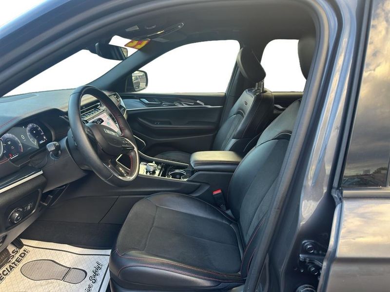 The vehicle is pure luxury with a heated steering wheel. The satellite radio system in it gives you access to hundreds of nation-wide radio stations with a clear digital signal. This vehicle enhances safety with a blind spot monitor, alerting drivers to potential dangers in adjacent lanes. It offers Apple CarPlay for seamless connectivity. This vehicle has automated speed control that adjusts to maintain a safe following distance, enhancing highway driving convenience. Our dealership has already run the CARFAX report and it is clean. A clean CARFAX is a great asset for resale value in the future. The leather seats in this mid-size suv are a must for buyers looking for comfort, durability, and style. Never get into a cold vehicle again with the remote start feature on the vehicle. This vehicle is a certified CARFAX 1-owner. An off-road package is equipped on this 2022 Jeep Grand Cherokee . Bluetooth technology is built into the Jeep Grand Cherokee, keeping your hands on the steering wheel and your focus on the road.