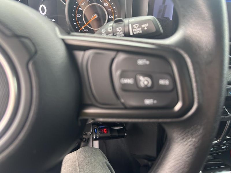 This unit offers Apple CarPlay for seamless connectivity. Bluetooth technology is built into this vehicle, keeping your hands on the steering wheel and your focus on the road. Protect the vehicle from unwanted accidents with a cutting edge backup camera system. Our dealership has already run the CARFAX report and it is clean. A clean CARFAX is a great asset for resale value in the future. This vehicle has automated speed control that adjusts to maintain a safe following distance, enhancing highway driving convenience. Good News! This certified CARFAX 1-owner vehicle has only had one owner before you. An off-road package is installed on this unit so you are ready for your four-wheeling best. This vehicle comes equipped with Android Auto for seamless smartphone integration on the road. It has a V6, 3.6L high output engine. When you encounter slick or muddy roads, you can engage the four wheel drive on the Jeep Wrangler and drive with confidence.